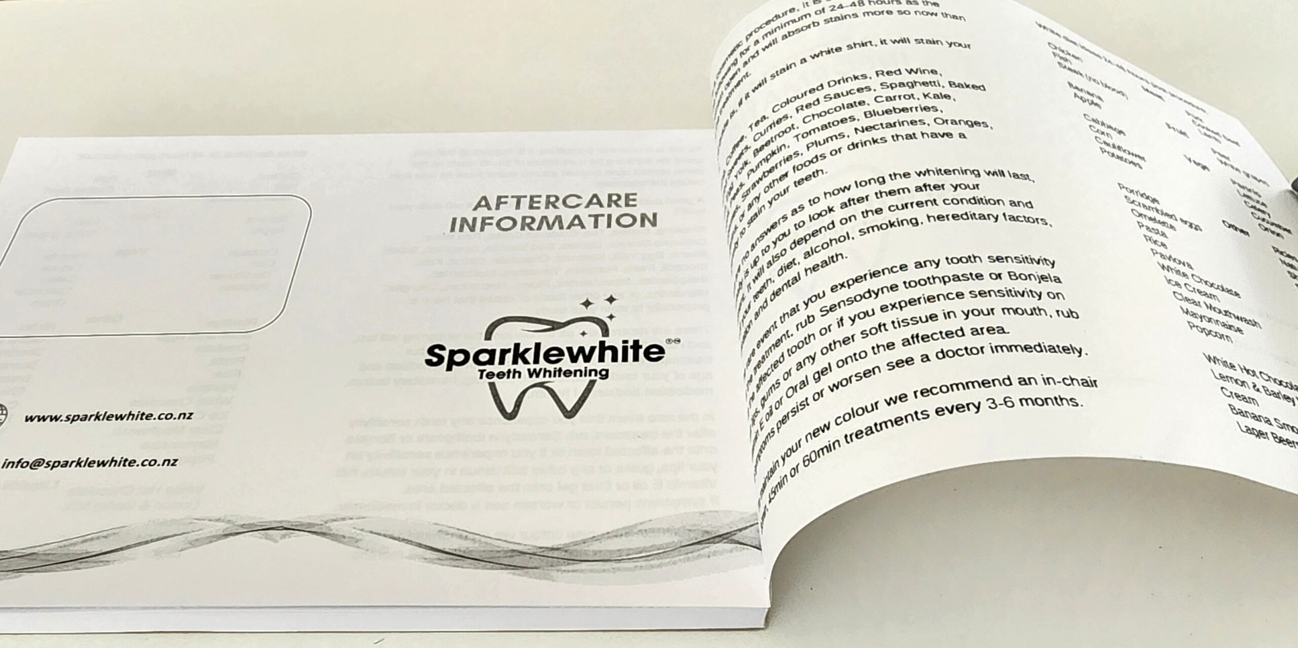 A5 After Care Booklet with Food List (Pad of 100)